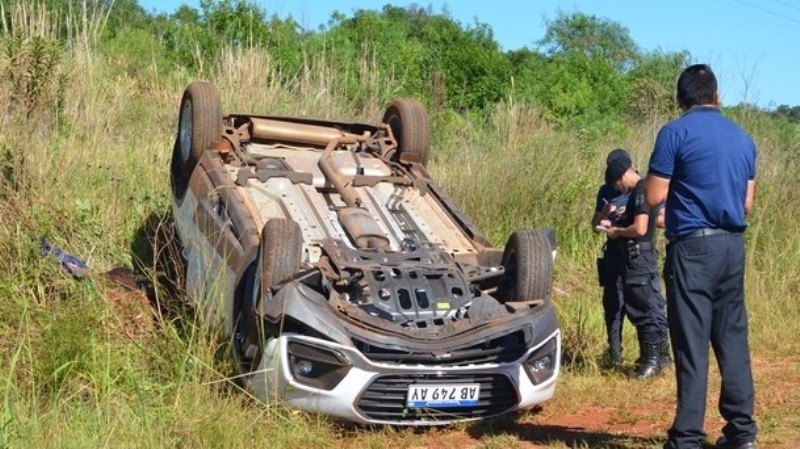 una camioneta Chevrolet Tracker despistó sobre la ruta entre las localidades de Apóstoles y Azara, y quedó en posición invertida.