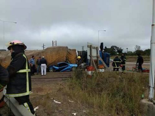 Ocurrió alrededor de las 7:30 de este viernes, un camión Iveco de origen brasilero que transportaba alimento para canes volcó y aplastó a un