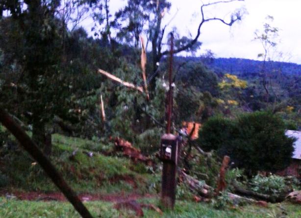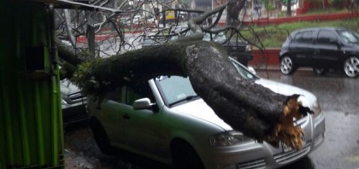 Temporal en Misiones: en Oberá la caÃda de un árbol afectó autos y un kiosco.