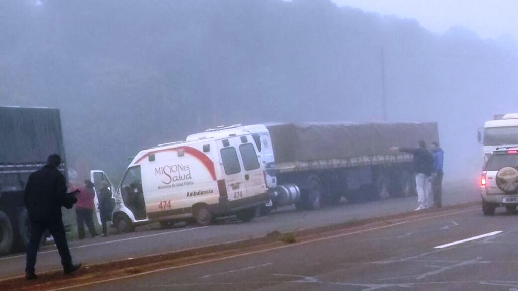 El siniestro vial ocurrió a las 7. Involucró a un automóvil marca Gol Trend, una ambulancia y dos camiones brasileros.