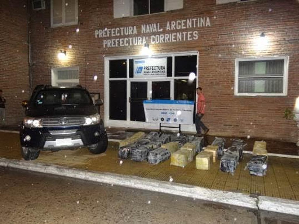 La Prefectura Naval incautó en Corrientes, 692 kilos de marihuana y una camioneta con pedido de secuestro.