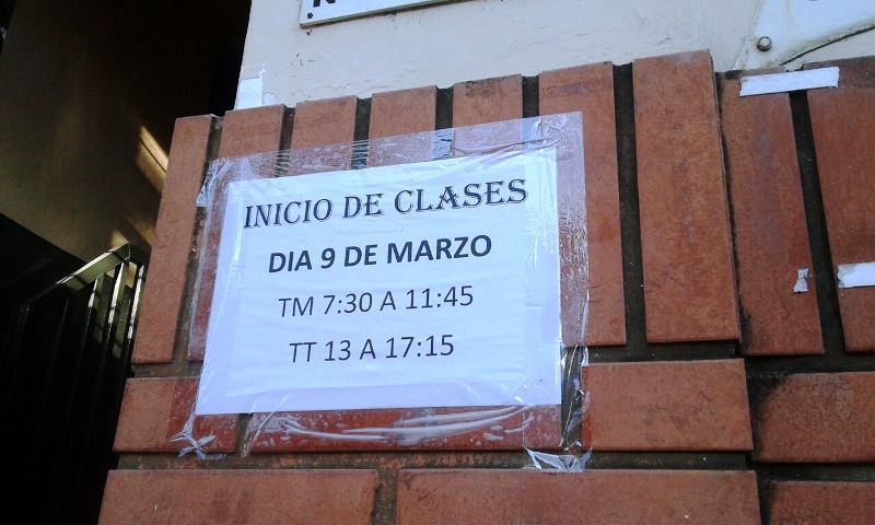 En la escuela N° 464 Almirante Guillermo Brown de Posadas, un cartel pegado en la entrada advierte que las clases se iniciarán el 9 de marzo