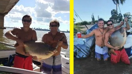 Diego y Lino, dos amigos, pescaron un Pacú de casi veinte kilos a metros de la Costanera de Posadas