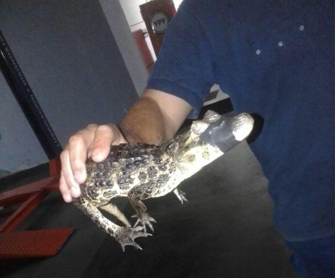 Encontraron un pichón de yacaré en un a Estación de Servicio.