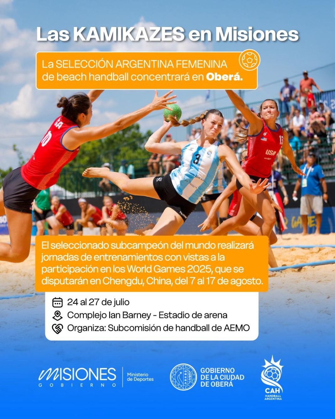 El seleccionado femenino de handball de playa realizará una concentración en Oberá de cara a los World Games, que se disputarán en Chengdu, China, del 7 al 17 de agosto