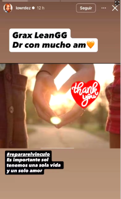 Hace 11 horas, a la cuenta oficial de Lourdes se subió una historia de Instagram con pasajes que no terminan de entenderse. “Grax LeanGG Dt con mucho amo [sic]”, se ve escrito sobre una foto de dos personas que caminan tomadas de la mano y forman un corazón.
