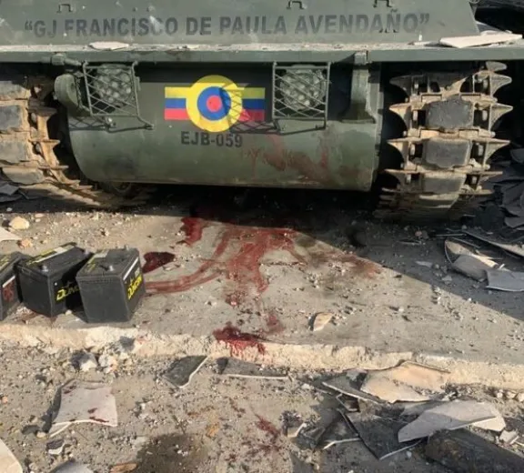 Las imágenes muestran tanques, camionetas e instalaciones militares venezolanas con impactos de balas y explosiones por el ataque de la artillería estadounidense. En varias imágenes se ven al menos cuatro cuerpos mutilados, algunos con traje de fajina militar.